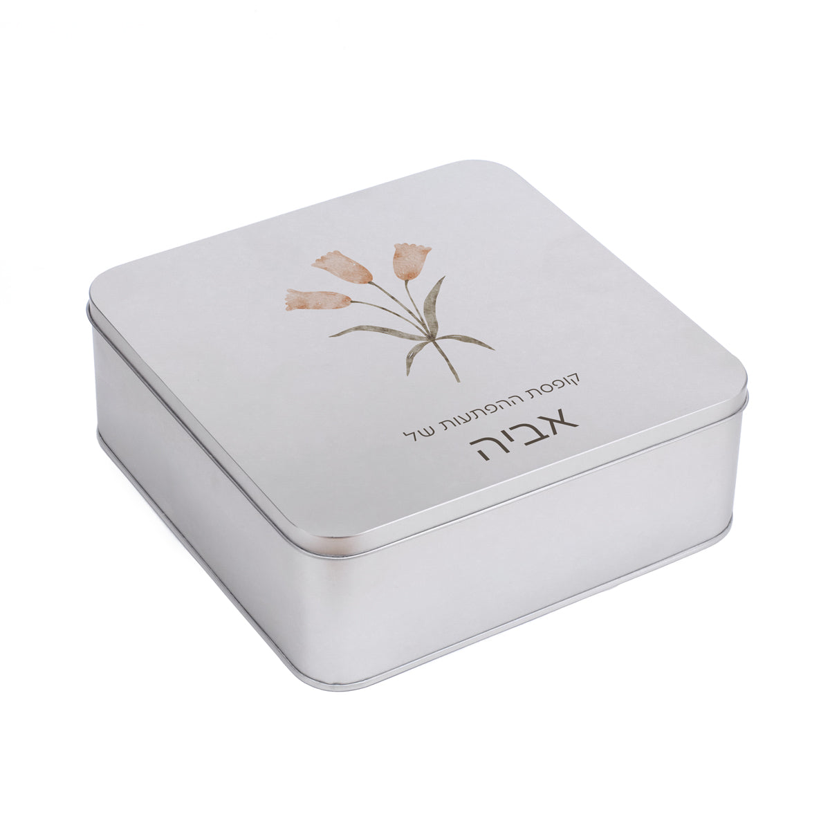 - קופסת מתכת ריבועית במידות 21 ס"מ על 21 ס"מ.