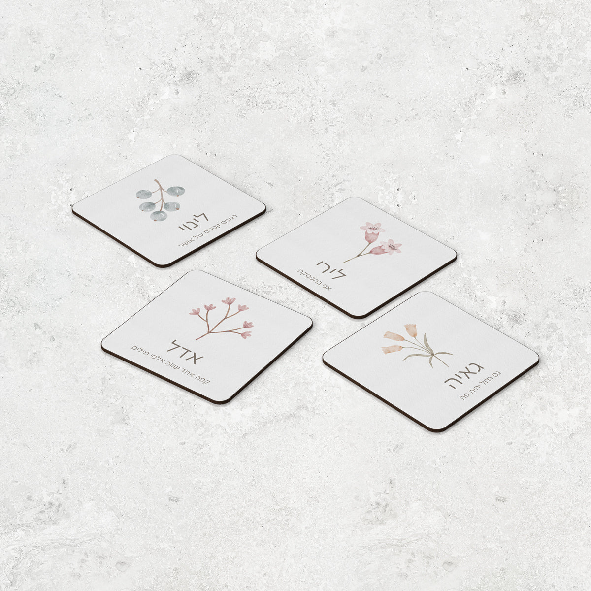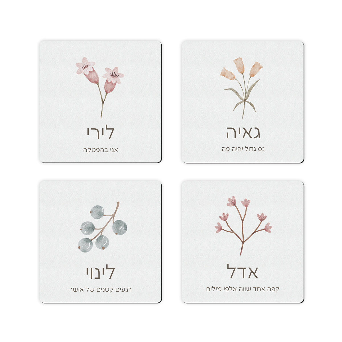 רביעיית תחתיות לכוסות בדגם אביב, כדי שיהיה משהו מתוק ליד הקפה:)