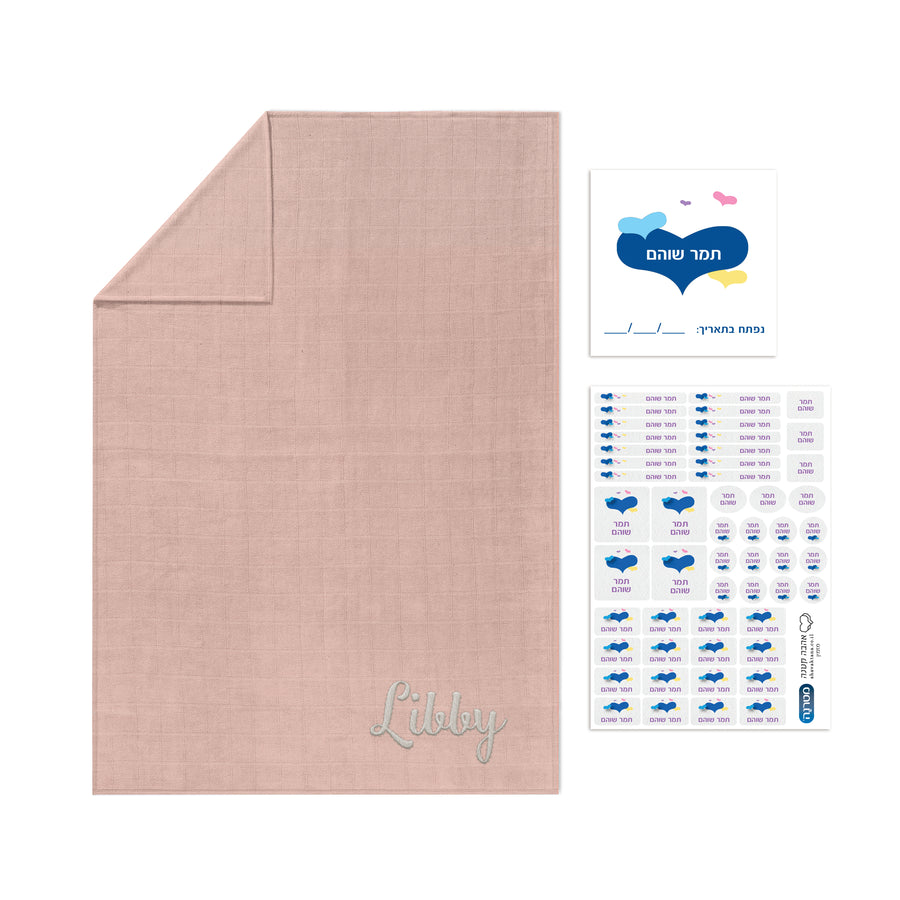 מארז מתנה ליולדת שמיכה + מדבקות שם + מגנט תאריך פתיחה - בלאש - מטרנה