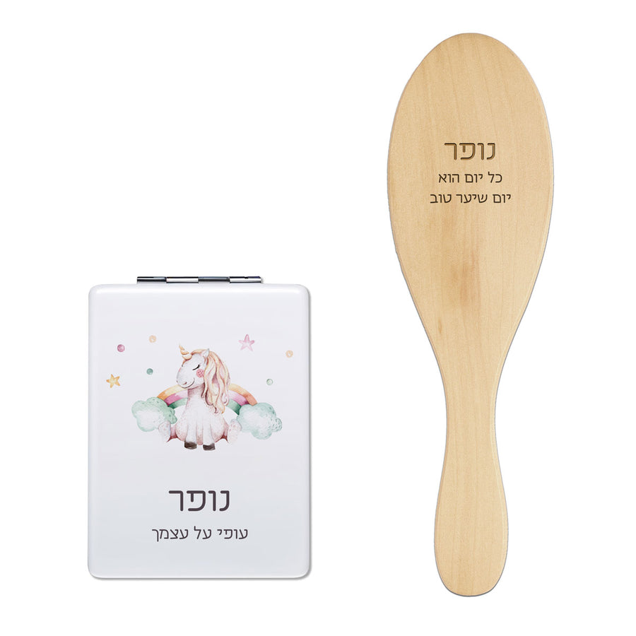 מארז מברשת לשיער - מראת כיס - חד קרן