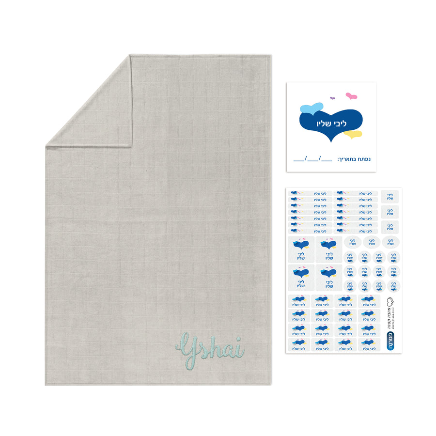 מארז מתנה ליולדת שמיכה + מדבקות שם + מגנט תאריך פתיחה - שנהב בנים - מטרנה