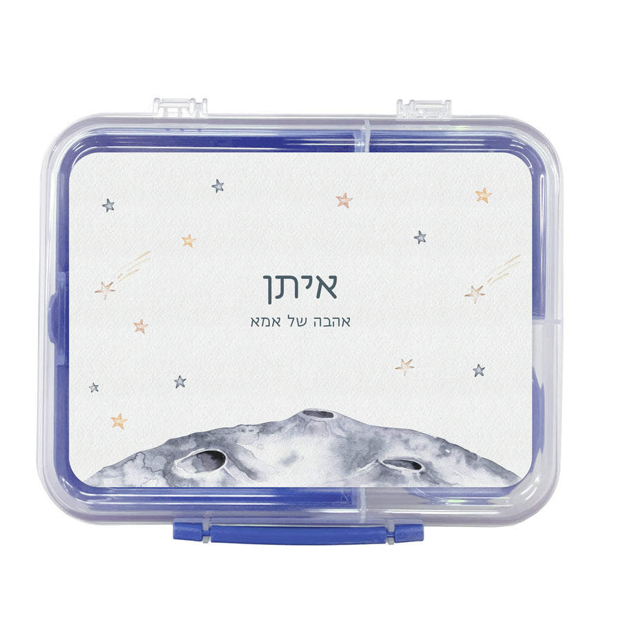 קופסת אוכל מחולקת ומעוצבת בדגם גלקסיה עם שם הילד, מבית המותג הניו-זילנדי Sistema, שעושה תיאבון!