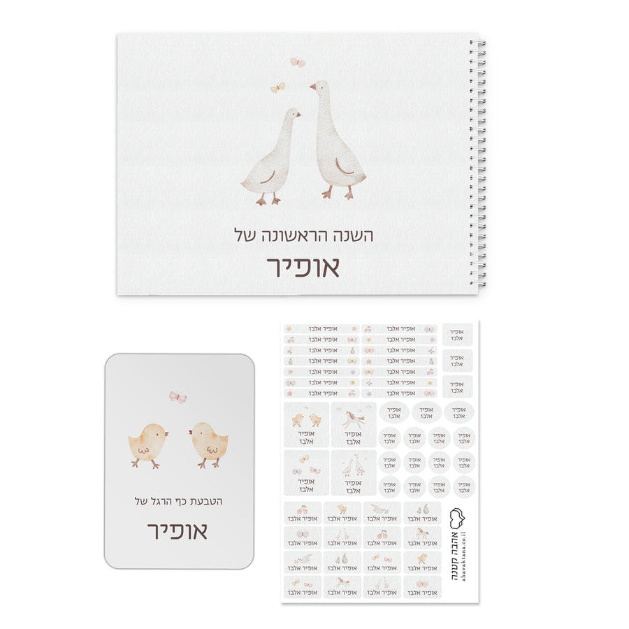 מארז מתנה ליולדת ספר השנה הראשונה + הטבעת כף רגל + מדבקות - שלווה