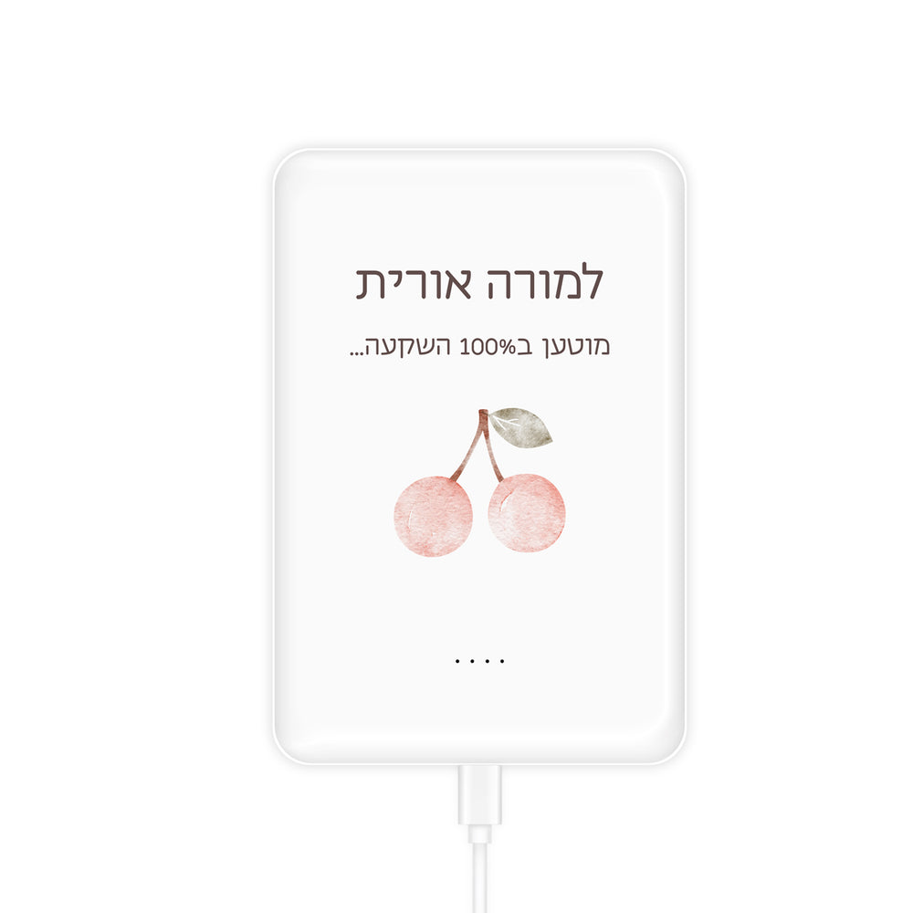 בכל מקום שיגיעו אליו - מטען נייד בעיצוב מרגש עם הקדשה מכל הלב שיטעין גם את המכשיר הסלולרי וגם את הנפש - עד לסוללה מלאה