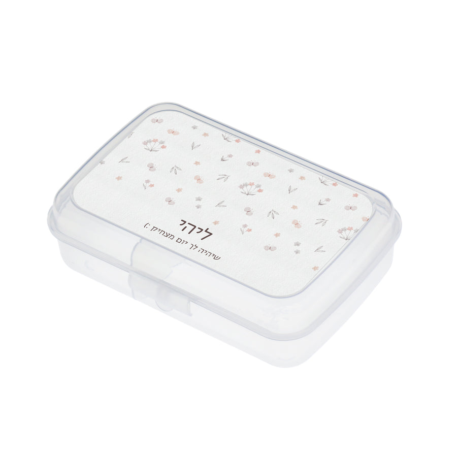 קופסת אוכל מחולקת ומעוצבת בדגם שלווה עם שם הילד, שעושה תיאבון!
