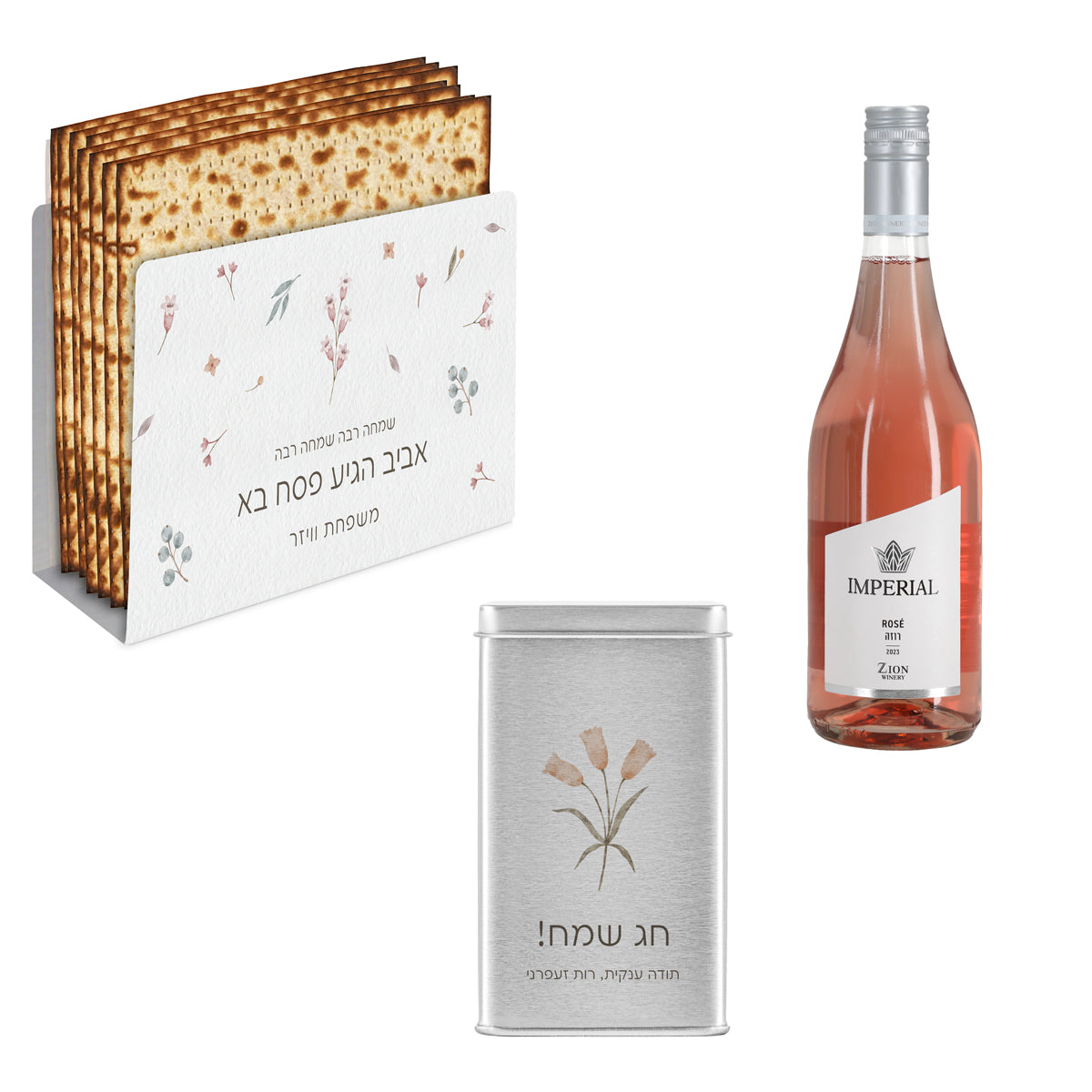 מארז מתנה בעיצוב אביבי עם הקדשה אישית שיסדר לכם את הפסח!