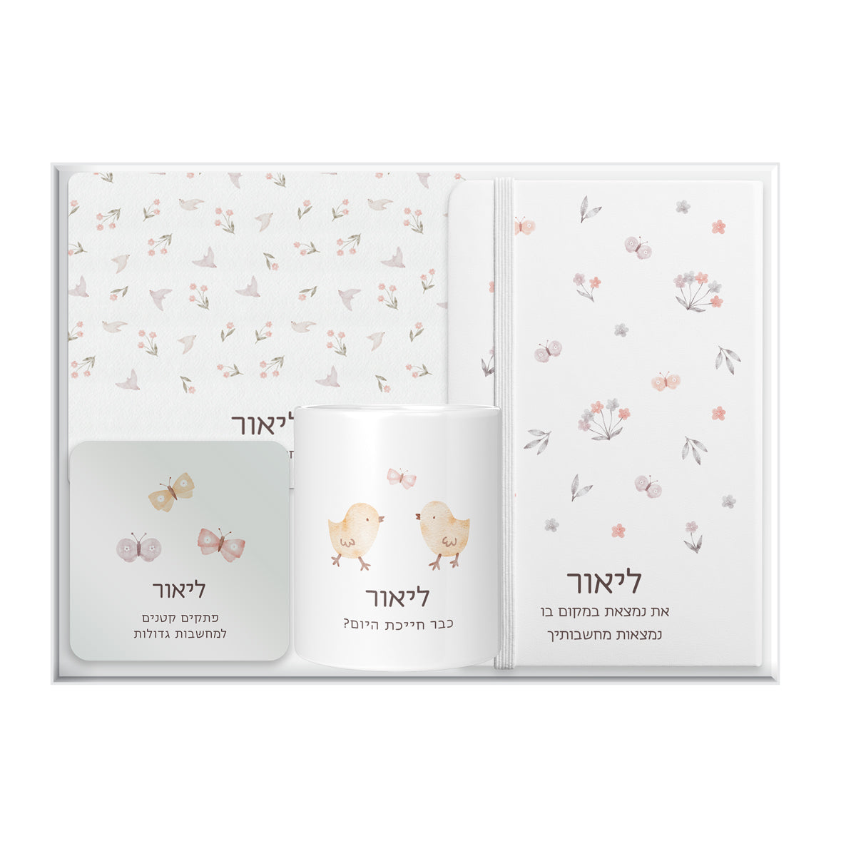 מארז מתנה - מחברת + פד לעכבר + כלי למכשירי כתיבה + קופסת דפי ממו - שלווה