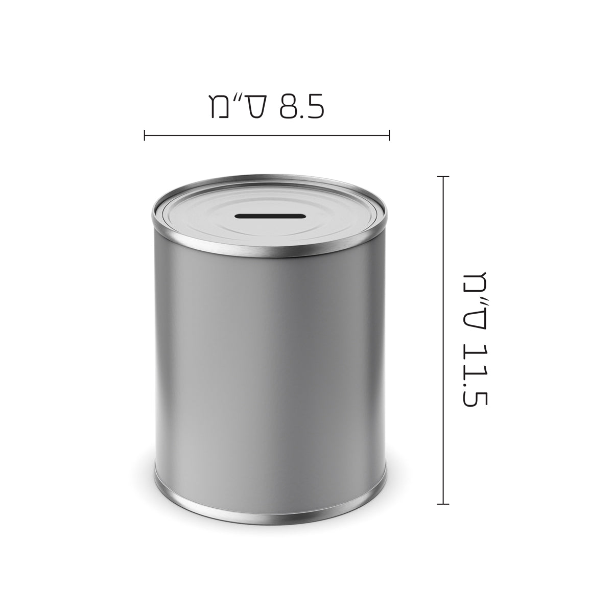 • קופסת פח במידות 8.5 X11.5 ס"מ, עם מכסה מחורץ להכנסת המטבעות