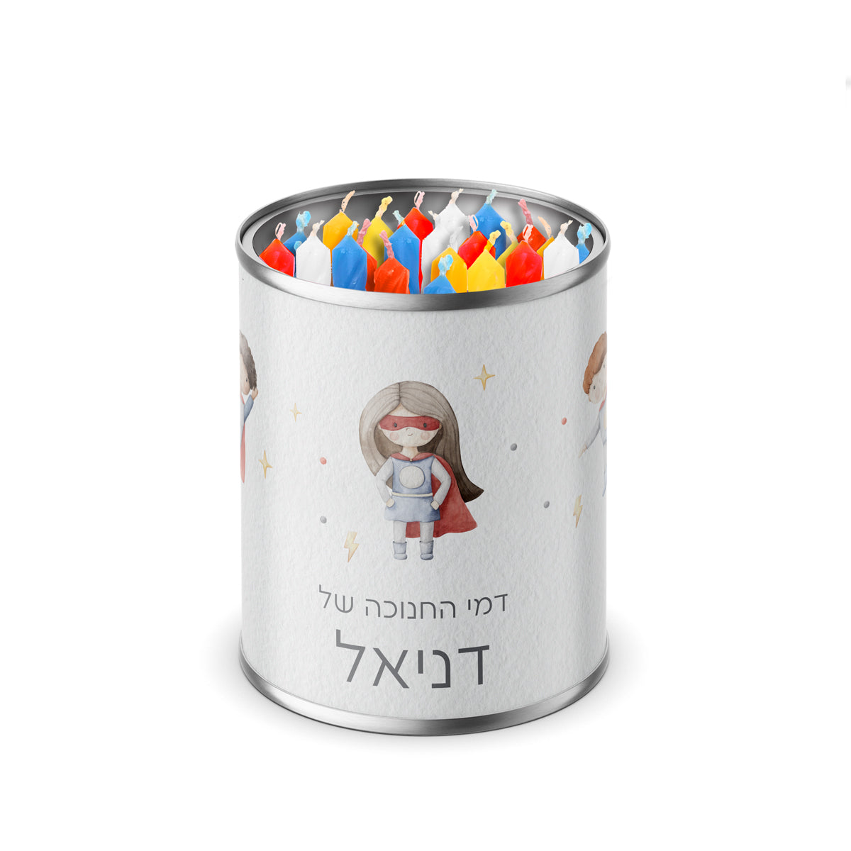 קופסת חיסכון במילוי נרות לחנוכה - גיבורי על